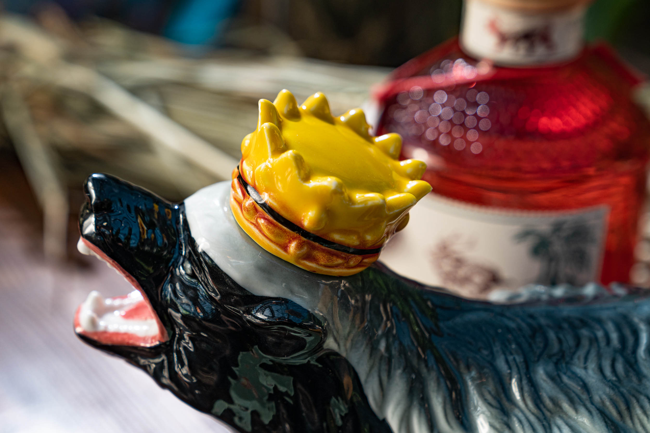 Distillery Exclusive Ceramic Honeybadger Bottle of Sausage Tree Pure Irish VodkaĀ (700ml) – Hand-painted with crown closure, from The Curious Mind of PJ Rigney.